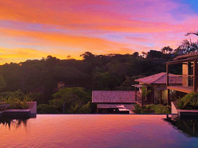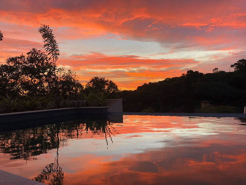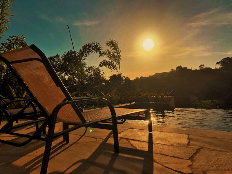 Um dos programas favoritos dos nossos amigos e hóspedes é debruçar sobre a borda infinita de nossa piscina azul esverdeada e simplesmente relaxar admirando o pôr do sol.